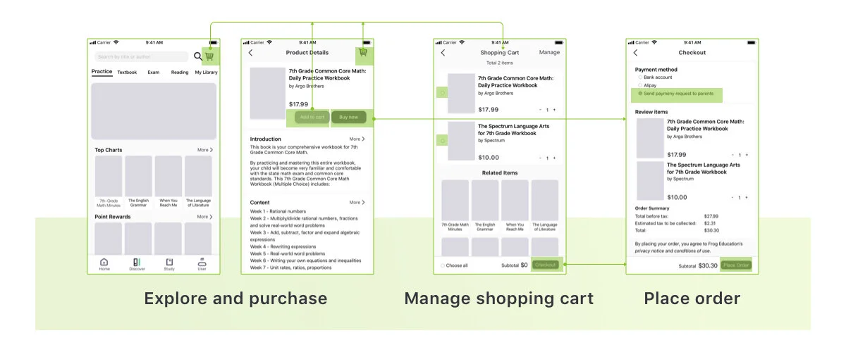 In this project, we focused on user experience for payment. I was the team lead and UX designer working with 3 other UI designers to create a feasible solution for Frog Education.